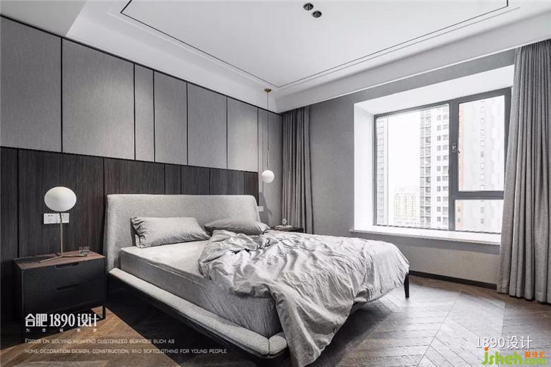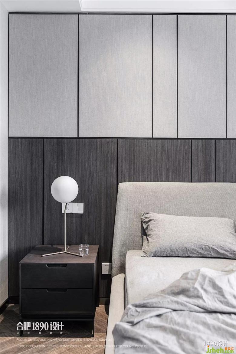 臥室整體風(fēng)格延續(xù)了公區(qū)一致格調(diào),高級灰的色調(diào)下,讓空間氣質(zhì)十足,不同造型分割的布墻布系統(tǒng)背景墻為空間增添一份穩(wěn)重,陽光傾瀉下來的午后,讓臥室更為溫馨。