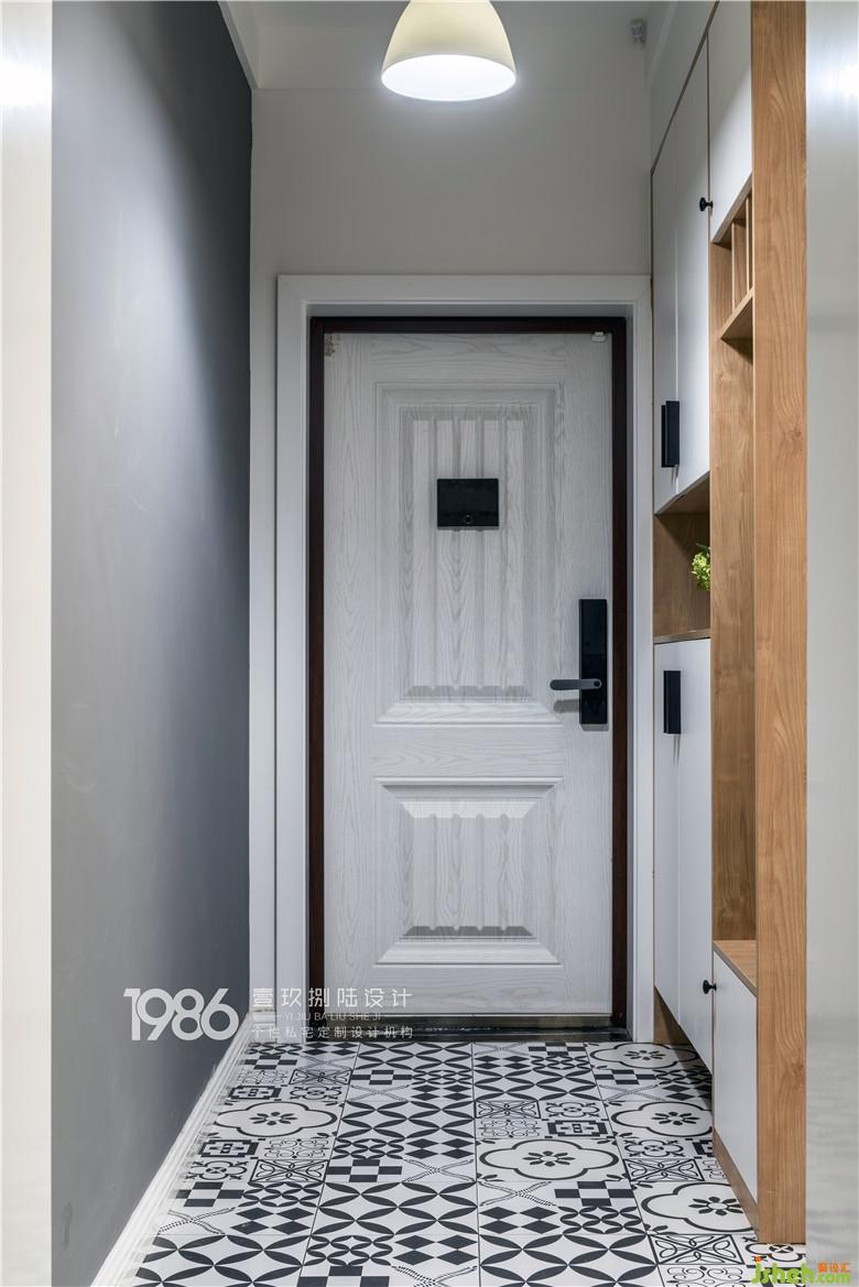 而門廳另一側(cè),用整面手繪黑板墻裝飾,這里將會(huì)成為孩子的涂鴉區(qū)域,放飛孩子天性又不用擔(dān)心家中的其他區(qū)域被涂抹。白色的入戶門與白色鞋柜,室內(nèi)設(shè)計(jì)師搭配黑白花紋的地磚,讓入戶區(qū)域整體協(xié)調(diào)而又不逼仄。