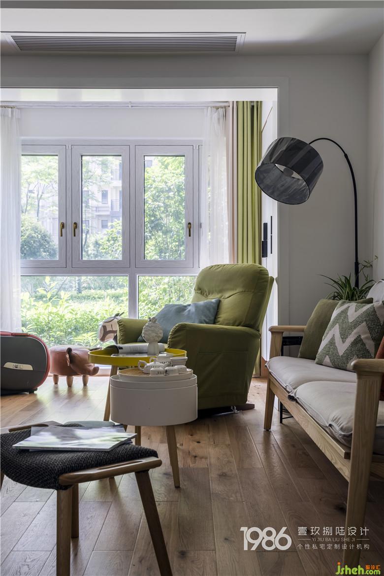 客廳的小象凳子與搖搖椅、陽(yáng)臺(tái)的小馬凳子,那么閑適充滿樂趣。窗外生意盎然的花草樹木呼應(yīng)著家中的綠色,空間增添令人愉快的活力氣息,就是幸福生活最好的容器。