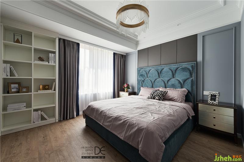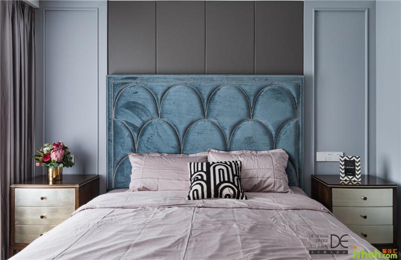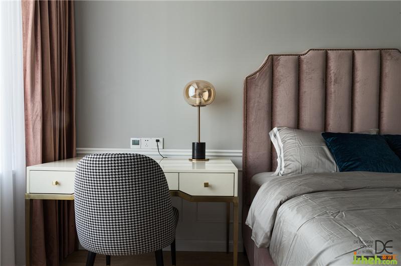 女兒房用藍(lán)灰和粉色打造,潔凈明亮;絲絨床背輔以金屬擺件,精致乖巧。已經(jīng)畢業(yè)的女兒悄悄長成了大姑娘,所以床頭的妝臺設(shè)計(jì)必不可少;花瓣造型的吊燈,輔之玻璃材質(zhì)的通透,柔美而浪漫。