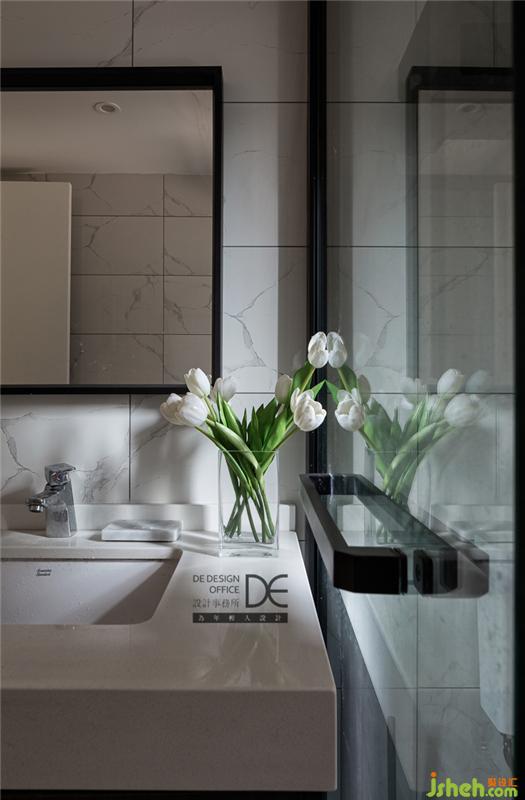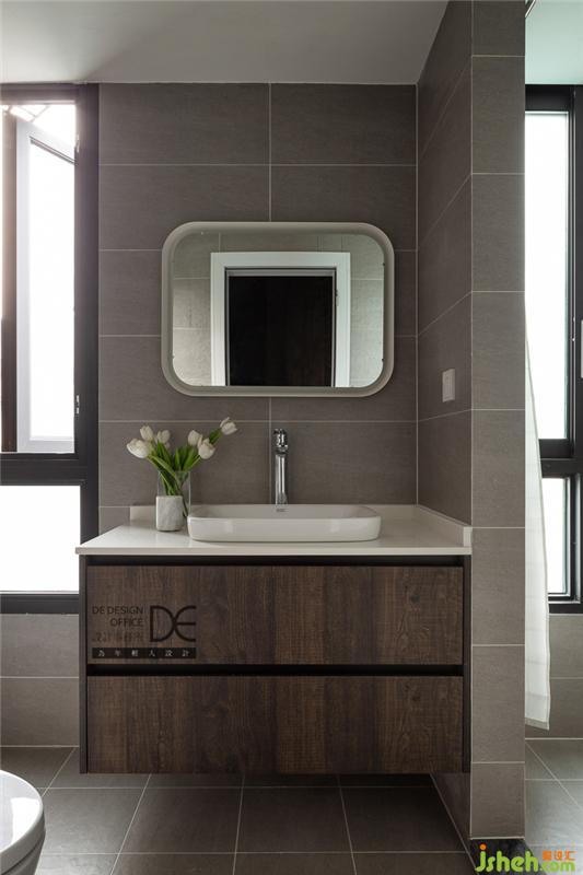 衛(wèi)生間采用了淺色的背景,搭配深色的家私,實(shí)現(xiàn)了其他空間風(fēng)格的延續(xù)。
