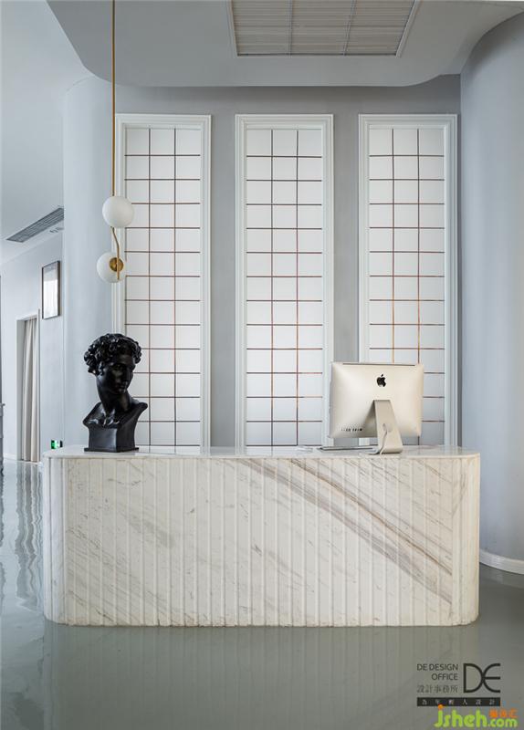前臺接待位置充分利用弧形元素,希望每位來賓都能感受到店面的舒適自在。金屬裝飾讓點綴與功能并進,和黑色雕塑一起,提升著接待區(qū)的藝術(shù)氣息。