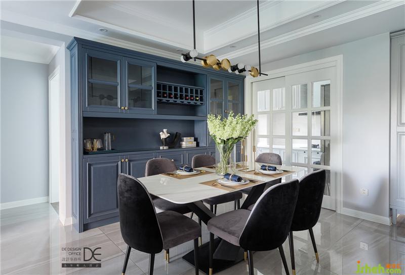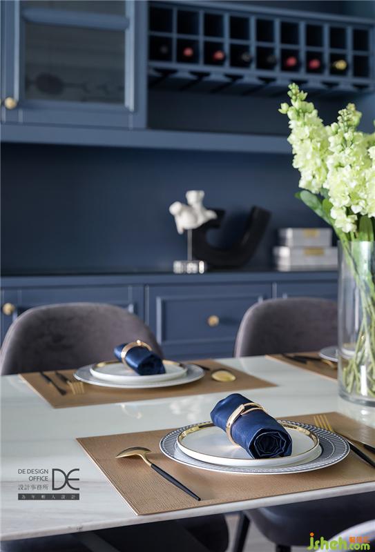 精通中國酒文化的男主人對餐廳的酒柜“情有獨鐘”,在設(shè)計之初就表示要有一面超大的酒柜來陳列他收藏的美酒,餐廳的酒柜正好滿足了他的需求。
