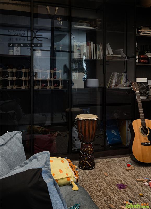 書房是男主人特意要求的專屬小空間,可以隨意、可以簡單,打打游戲、彈彈吉他,與這個殘酷世界相隔絕。畢竟對于心里住著小孩的男人來說,游戲就是生活的避難所。