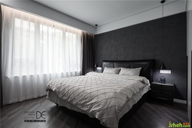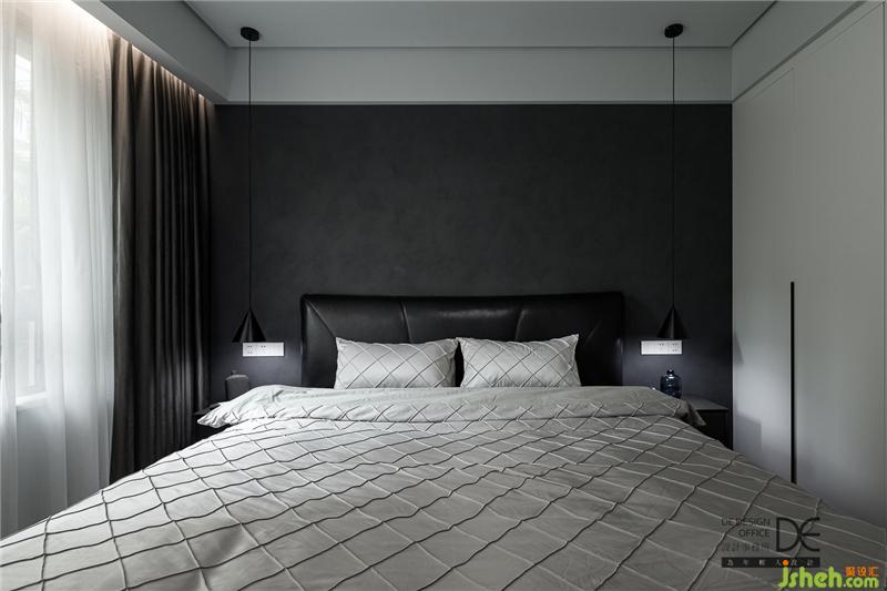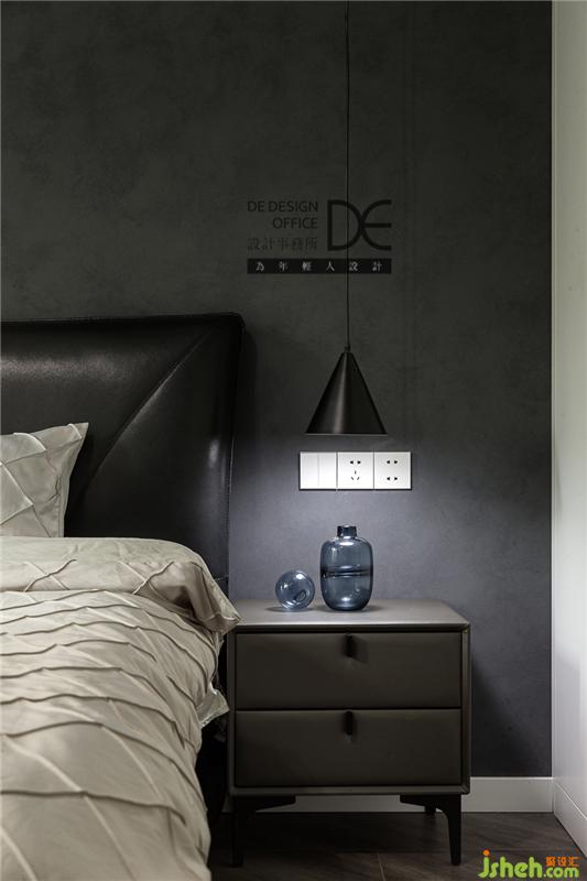 臥室深灰質(zhì)感漆的設計與皮質(zhì)沙發(fā)的碰撞帶來一種安靜,這樣的空間氛圍,幫助入眠于無形。