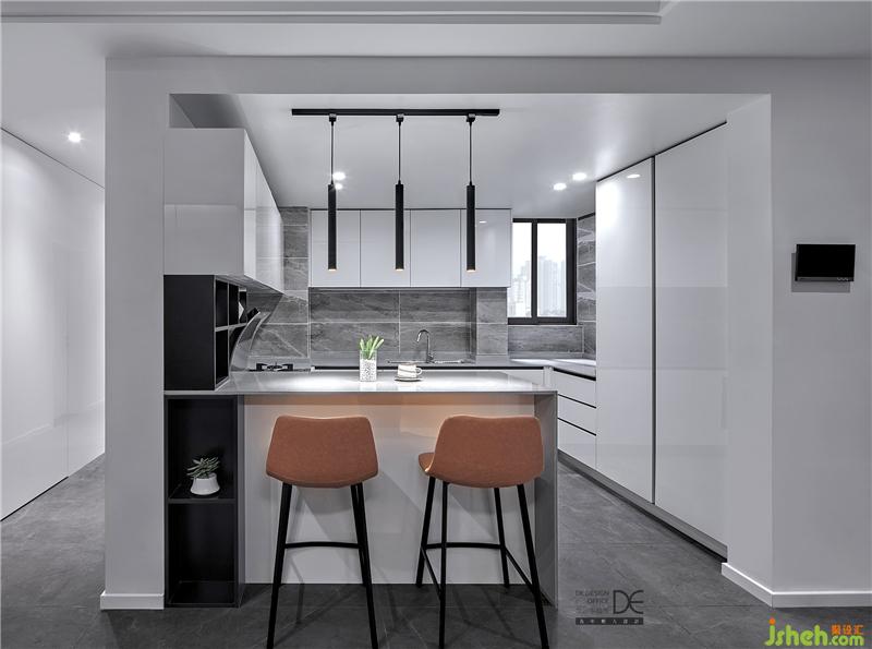 以白色為主的色調(diào),讓廚房和餐廳相呼應(yīng),開放式廚房添上一絲煙火氣息,生活因此鮮活起來。