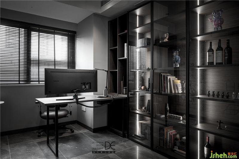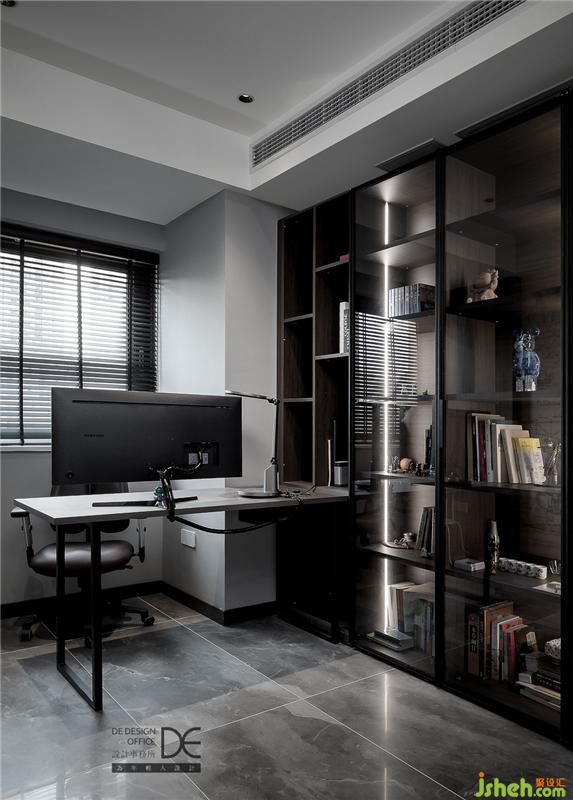 建筑行業(yè)的小姐姐總是給人一種酷酷的感覺,所以在書房設計上,也不乏線條元素的出現(xiàn)。玻璃展示柜里擺放的是業(yè)主的心愛之物,書房承載著業(yè)主的喜好,也記錄著她安靜思考的痕跡。