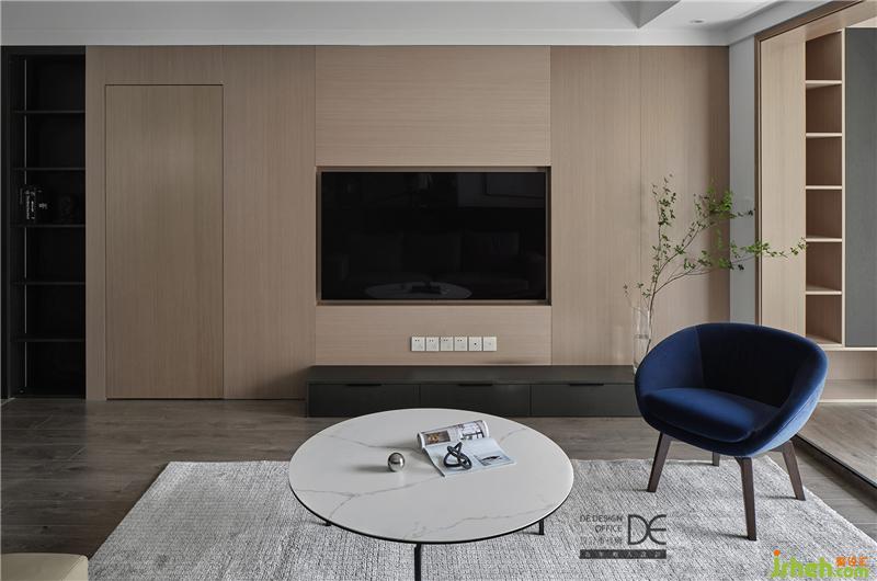 次臥白色打底,木色和深灰色碰撞。以榻榻米的形式設(shè)計(jì)整個次臥,床頭靠背和書桌形成一個整體,讓空間更有延展性。