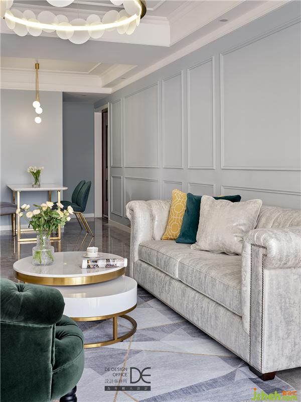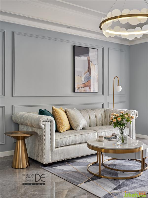 選用淺色系作為客廳的主色調(diào),融合金屬達(dá)到輕奢感。整體配色給人清新明亮的感覺(jué),少許深色運(yùn)用不顯壓抑反而更為吸睛。