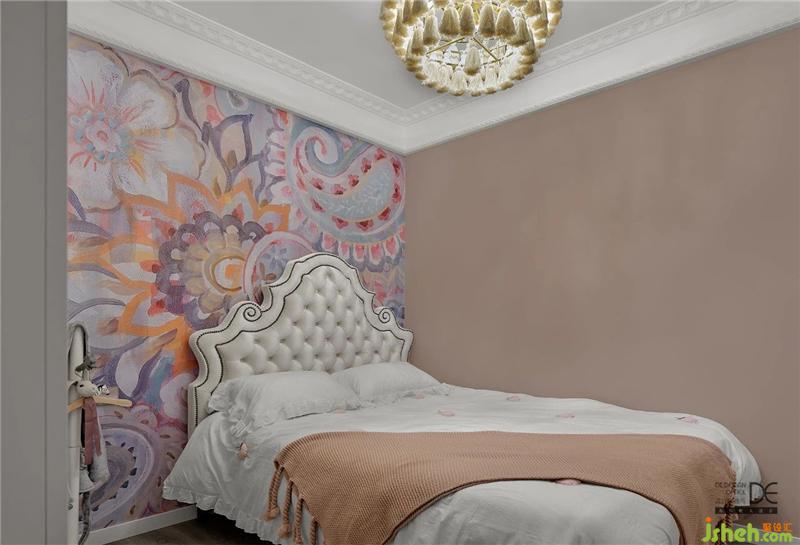 粉色的背景墻搭配白色的床,干凈素雅,讓人鎮(zhèn)定。立體的壁紙畫讓整個(gè)空間看起來更加的生動(dòng),樂趣無窮。