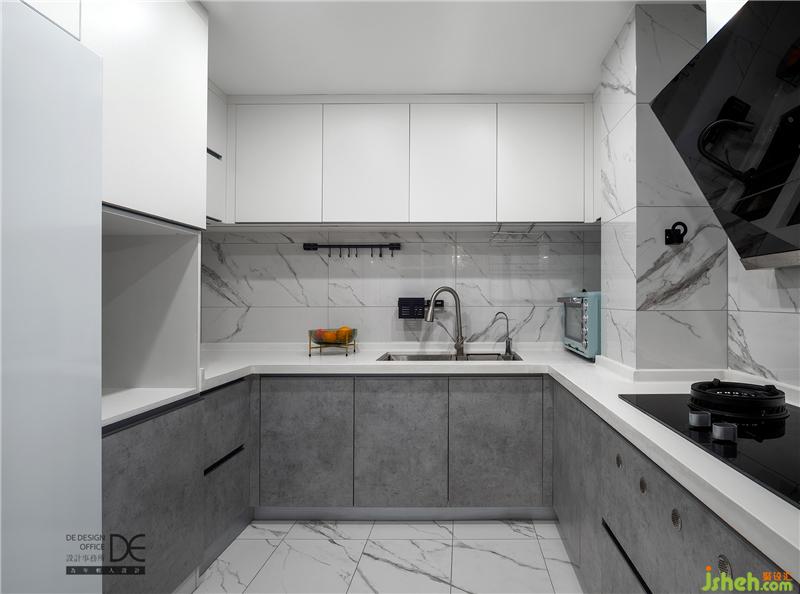 由于戶型原因,廚房往生活陽臺移了60公分,增加了廚房的面積,使廚房布局更合理,確保了廚房能夠滿足一大家人的生活需求。