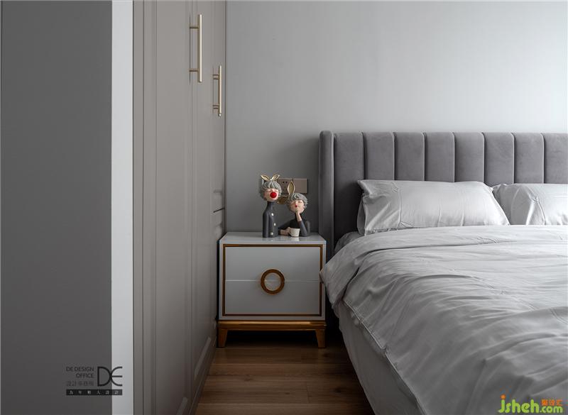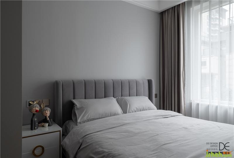 父母房設(shè)在一樓,出門即是衛(wèi)生間,最大程度方便老年人日?;顒?dòng),減少樓上樓下來回跑動(dòng)的次數(shù)。房間整體色系采用了低調(diào)沉穩(wěn)的灰色系,乍一看,自有一股舒適寧靜的感覺。