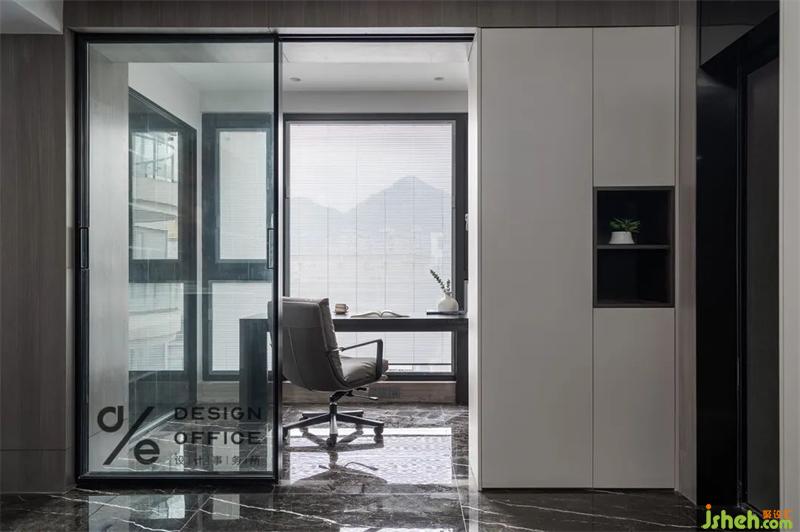 書(shū)房考慮在門廳右側(cè),家里唯一一面可以看見(jiàn)南山景色窗戶留給了書(shū)房。