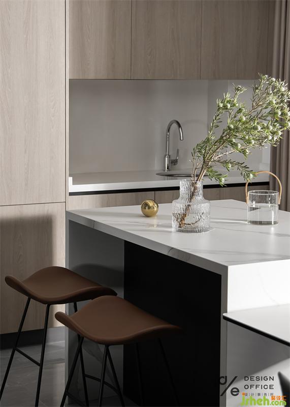 廚房的采光及通風(fēng)更好的與客廳相互對(duì)流,西廚背后是一個(gè)帶有水盆的吧臺(tái),使用上,我們轉(zhuǎn)身的操作會(huì)更順手,水盆也能將有油的盆和洗水果杯子的盆進(jìn)行區(qū)分,更加干凈衛(wèi)生。
