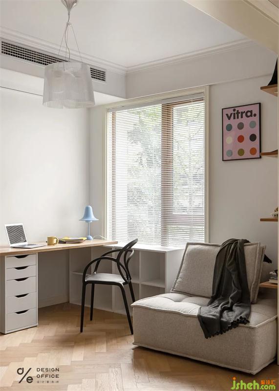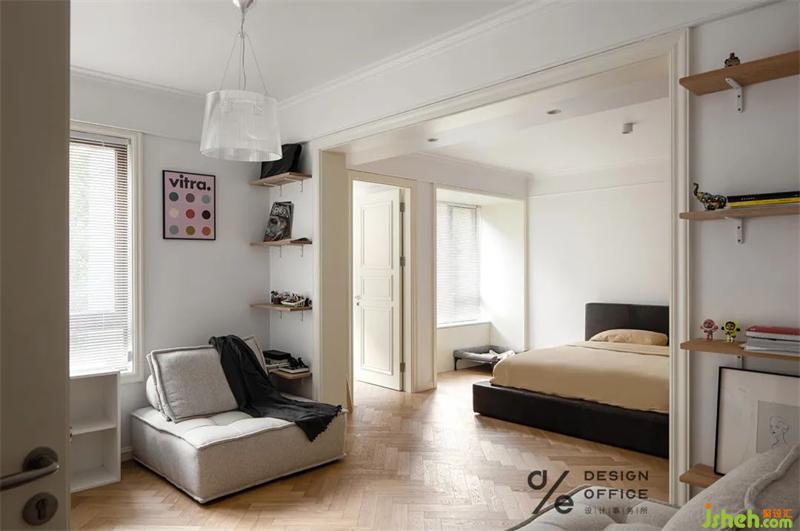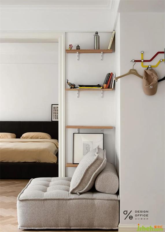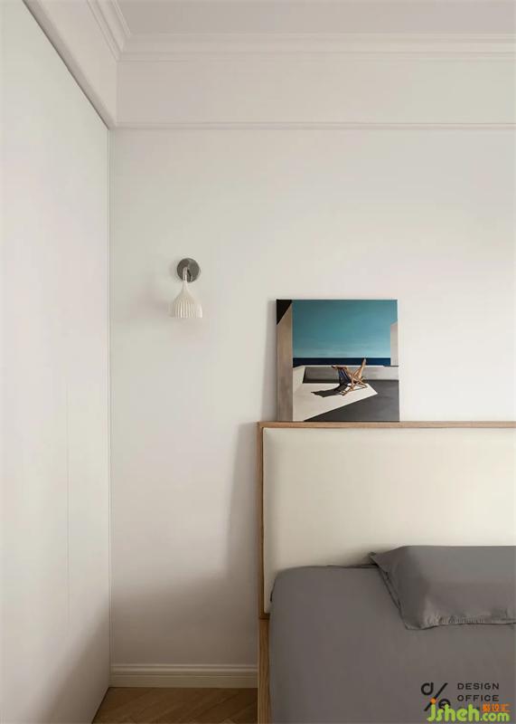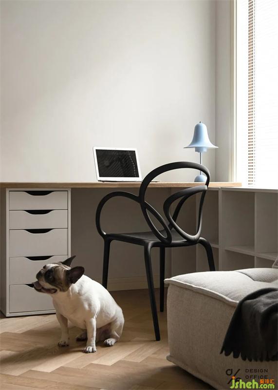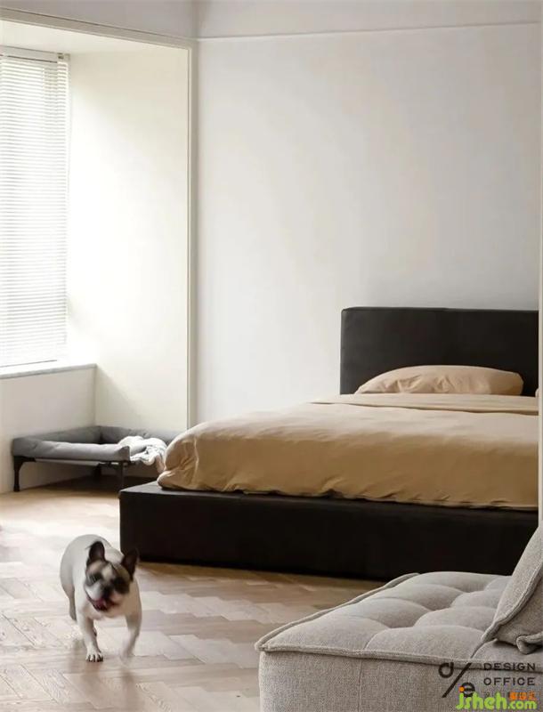 角落為狗狗安置的小窩,無不體現(xiàn)出對它的寵愛,即使它愛打呼,愛調(diào)皮搗蛋。但是有它的日子,除了快樂,就沒別的了。床頭業(yè)主的戀愛合照,是臥室唯一的裝飾品,簡單卻又不可替代,屬于兩個人的私密空間,合適舒服才是最重要的,因為只有熱愛生活的人才會記錄生活的點滴。
