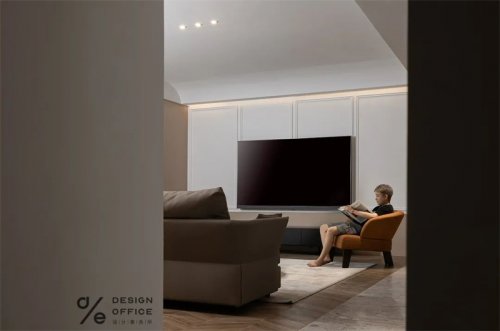 柜體式的電視墻,過道內凹式柜體處理,為業(yè)主創(chuàng)造了足夠多的儲藏空間。開放式的廚房和半開放式的多功能室,讓客廳顯得更加的寬敞,互動性更強。