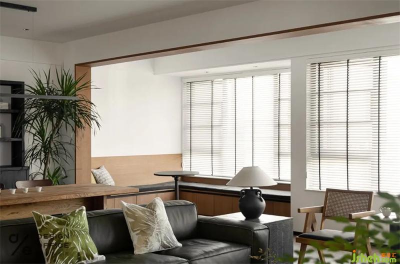 白色與木色的結(jié)合,有種特別的渲染力,卡座兼具收納功能,原木材質(zhì)多了一些自然韻味。臨窗的設(shè)計擁有了絕佳的觀景視角,將一年四季的變化盡收眼底。
