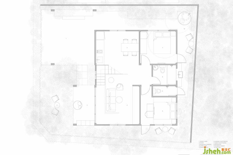 在每個(gè)房間單元,HAS Design and Research建筑事務(wù)所主持建筑師Jenchieh Hung、Kulthida Songkittipakdee以不同的布料編織密度,結(jié)合太陽(yáng)光影創(chuàng)造出多變化的視覺(jué)通透性。移動(dòng)式布料墻既可以分隔出靜態(tài)與動(dòng)態(tài)空間,也能敞開(kāi)配合不同功能達(dá)到最大化Seasonal Room效果。精心設(shè)計(jì)的景觀(guān)以本地石材與植栽組合,打造出別致的季節(jié)性空間體驗(yàn);在竹林景觀(guān)的端點(diǎn),移動(dòng)式透光布料結(jié)合綠植叢林,塑造出具有度假感的水霧SPA。