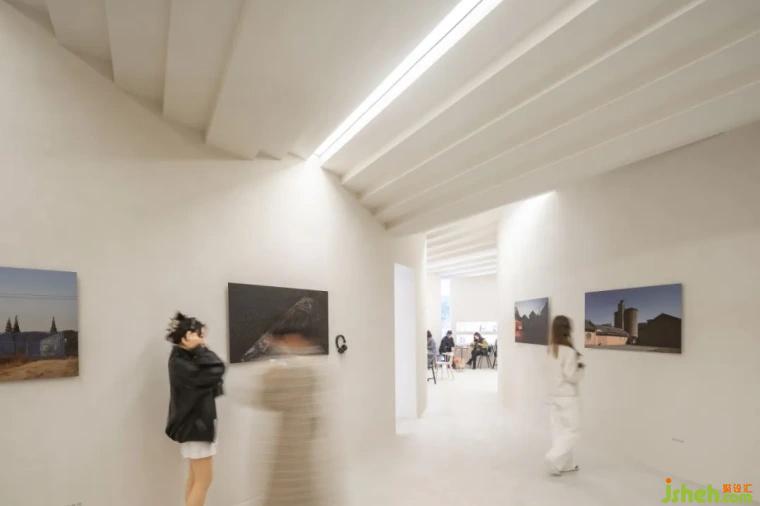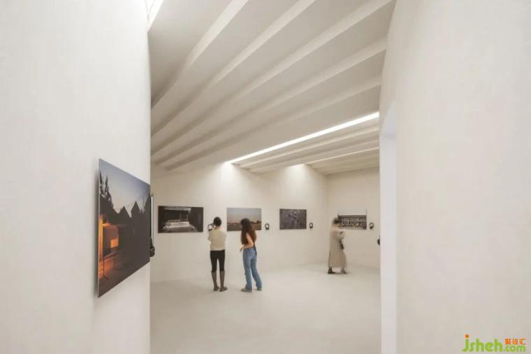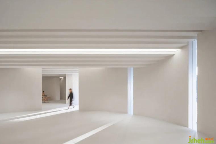 在首層空間,碩大的頂面灰空間提供人們交流、對(duì)話、關(guān)懷與問候等開放性場(chǎng)所,它體現(xiàn)當(dāng)?shù)厝藢?duì)生活的期望,以及對(duì)彼此的重視,而這樣的情感交換提升當(dāng)?shù)鼐用駥?duì)藝術(shù)與美的想像,替生活置入的強(qiáng)大能量。該建筑的鋸齒狀頂面聯(lián)系數(shù)個(gè)藝術(shù)展覽空間,頂面下方由數(shù)個(gè)曲面墻體支撐,創(chuàng)造出有如中國(guó)園林般曲徑通幽,結(jié)合從外部滲透進(jìn)來的光影,讓自然與藝術(shù)相互對(duì)話,呈現(xiàn)一種永恒性的空間體驗(yàn)。二層空間是開放式辦公,延續(xù)一層藝術(shù)文化展覽,辦公空間的形式與體驗(yàn),不同于常規(guī)工作場(chǎng)域,設(shè)計(jì)透過曲線墻體的起伏,自然而然分隔與連接數(shù)個(gè)文化辦公場(chǎng)所。自由延伸的墻體,帶給工作人員有如美術(shù)館自身的純粹感,不僅強(qiáng)化辦公環(huán)境的創(chuàng)意啟發(fā)與文創(chuàng)設(shè)計(jì),也增強(qiáng)工作之間的交流與討論,創(chuàng)造文化活力并注入藝術(shù)氛圍的工作場(chǎng)所。
