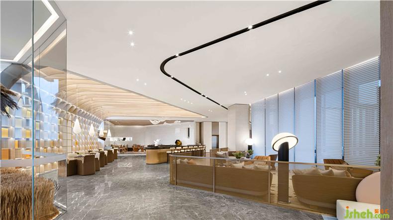 灰白、雅棕是深談區(qū)的主色調(diào),漸變展示書架使得空間功能分區(qū)柔和,室內(nèi)設(shè)計(jì)師星星點(diǎn)點(diǎn)的光線折射其中,熠熠生動(dòng),清雅透亮。流麗與典雅滲透在洽談空間的每一處。