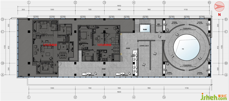 步入階梯,來到人居體驗館、藝術(shù)過廊,其主要功能除了承擔(dān)空間分流以外,延續(xù)空間的藝術(shù)體驗。人居體驗館容括了亳州遠(yuǎn)大當(dāng)代城MOMΛ品牌內(nèi)核,將共建人文、藝術(shù)的活力社區(qū)作為生活heng美。