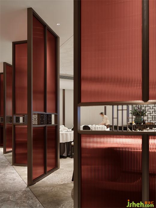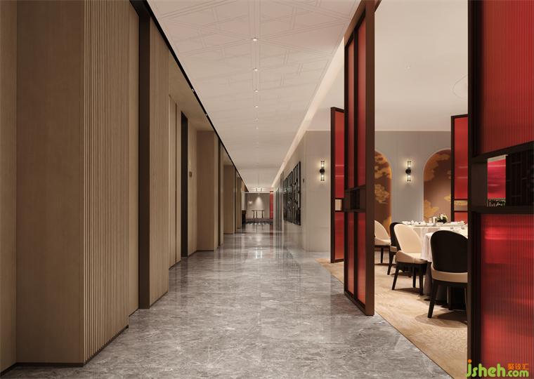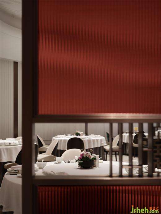 空間分為迎賓區(qū)的入口大堂、一條帶有敘情故事的公區(qū)長(zhǎng)廊走道連接著公共用餐區(qū)和8間包房,另一條VIP走道為5間包房,附有音控室、置衣間、紅酒柜更配有男衛(wèi)與女衛(wèi)及無(wú)障礙衛(wèi)生間。