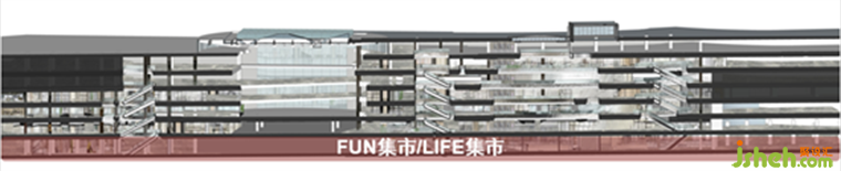 兩地塊連廊空間植入生態(tài)溫室的主題,創(chuàng)造自然環(huán)境與商業(yè)結(jié)合,購物廣場設(shè)計(jì)選用自然水元素呼應(yīng)運(yùn)河,打造城市展廳,將綠化空間串聯(lián),延伸至生態(tài)水岸,商業(yè)面跳動(dòng)的綠色植栽更增加項(xiàng)目生態(tài)感。