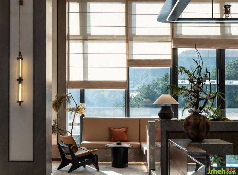 MOK看重人文敘事,以現(xiàn)代主義的設(shè)計(jì)語(yǔ)境重塑售樓處自然空間的純粹質(zhì)感,并植入源地文化傳承與當(dāng)?shù)厣铒L(fēng)向的體驗(yàn)元素,與周邊山湖環(huán)繞融為一體,感受自然藝術(shù)賦予生活的靈韻,構(gòu)筑一處生態(tài)宜居的現(xiàn)代格調(diào)之境。