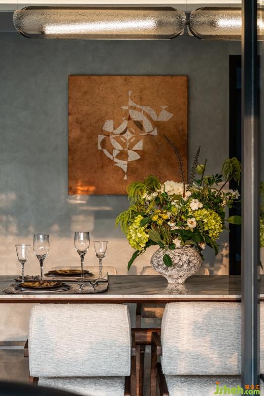清風(fēng)云色淡然,暖光在客餐廳區(qū)間泛起漣漪,開放式的用餐布局,令彼此的界限消弭不在,獲得在自然中煙火棲居之暢意。