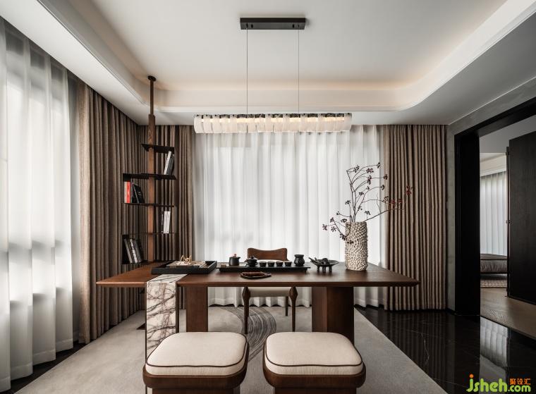 大地色自然風(fēng)格作為疊翠的標(biāo)志性設(shè)計(jì),深淺格調(diào)與木質(zhì)、金屬、石材等元素的運(yùn)用,最終營(yíng)造了整體沉穩(wěn)的暖意和靜雅的氣質(zhì),不浮于表面,刻寫在客廳空間場(chǎng)景的生動(dòng)細(xì)節(jié)之中.
