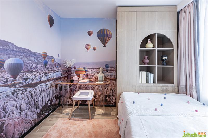 兒童房以熱氣球、海洋、太空主題形式,在孩子幼年時(shí)期身體各方面迅速發(fā)育階段,這個(gè)階段孩子對周圍充滿極大的興趣,比較好動(dòng)。艷麗的色彩能夠激起孩子的活力,使孩子產(chǎn)生興奮,而且強(qiáng)烈的色彩也能夠刺激孩子的視覺神經(jīng),有利于孩子眼睛視力發(fā)育。