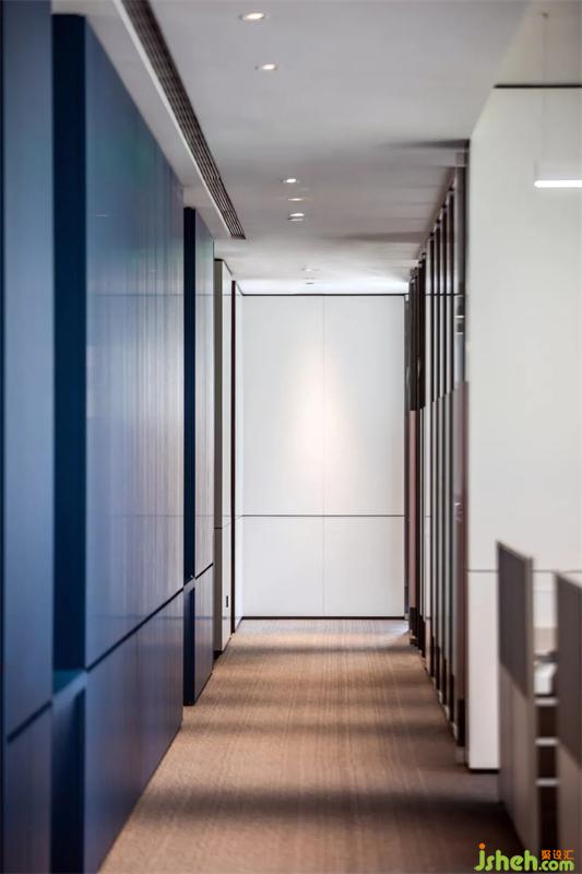 本樂(lè)章為交響曲中的交替奏出、活潑的旋律。公共辦公區(qū)設(shè)計(jì)延續(xù)了冷靜的藍(lán)色色塊,以色彩渲染間接影響員工的工作情緒與場(chǎng)景需求,在這樣的空間中人與空間的狀態(tài)是靈活的,多變的。