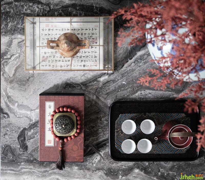 典藏雅致的現(xiàn)代中式,無(wú)疑是本案的基調(diào)。在淡雅飄逸的水墨中,潑灑幾縷赭紅,如同平淡生活中血脈之間始終濃烈的情感,暈染成本案的底色。