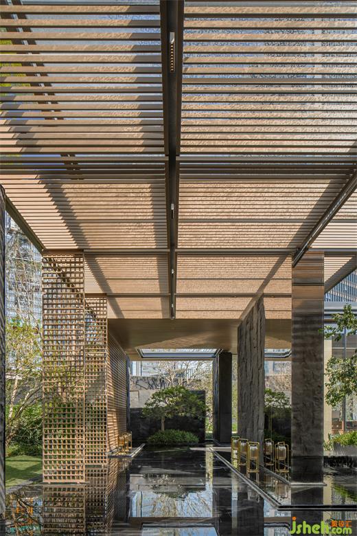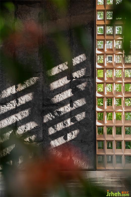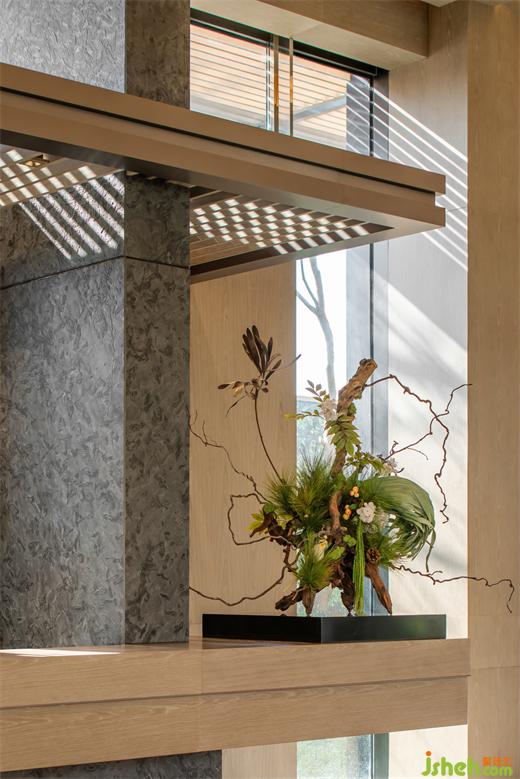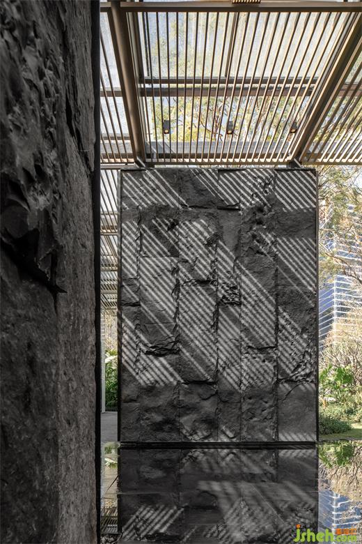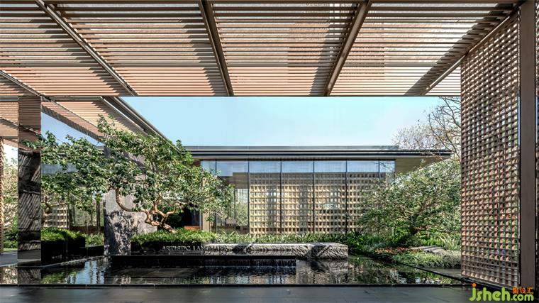 光影連接著木與石的交織,看枝葉慢長,草木叢生,售樓處設(shè)計構(gòu)建出城市里的一處心靈凈土。