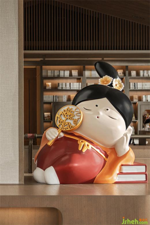 營銷中心設(shè)計以唐人宮樂圖為靈感由來,引用“唐朝胖妞兒”的形象元素,融入展示區(qū)為形象雕塑展示,在趣味形象下,打造寓教于樂的生活社區(qū),進(jìn)而描繪出一位唐宮娃娃進(jìn)入書院學(xué)習(xí)娛樂的場景。