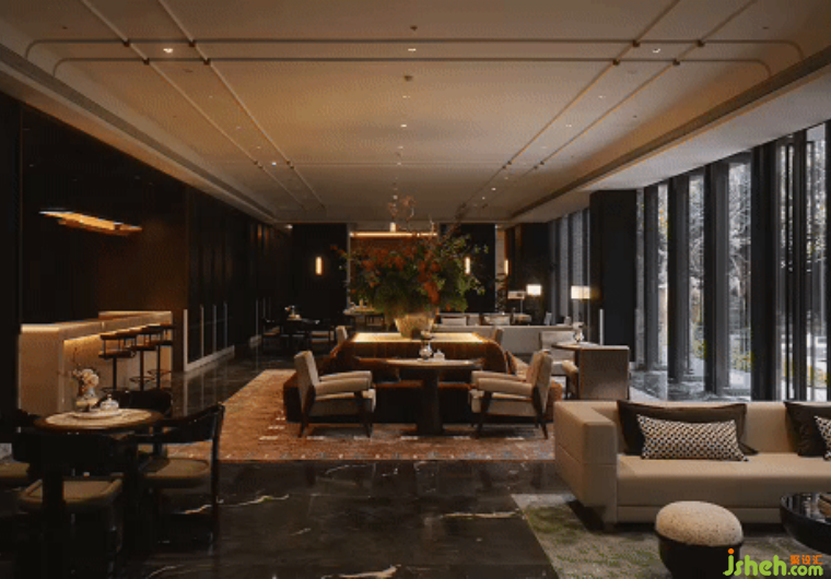 會所設(shè)計從顏色符號到形制元素,進行多元的解構(gòu)和重組,局部點綴金屬細節(jié),將摩登海派和現(xiàn)代都市的藝術(shù)融合完美表達。