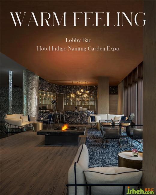 東方既白,光線穿透全幕幻彩玻璃大門,噴濺寶石虹彩。躍金沉璧,大堂流溢輕盈的夢。懸浮的鏡面金屬構(gòu)成巨大茶晶,似琥珀凝駐歲月。南京園博園英迪格酒店設(shè)計八根亞克力圍裹原木廳柱,身披銀色風(fēng)蝕銹衣,書寫遠古叢林的神秘。