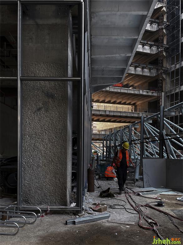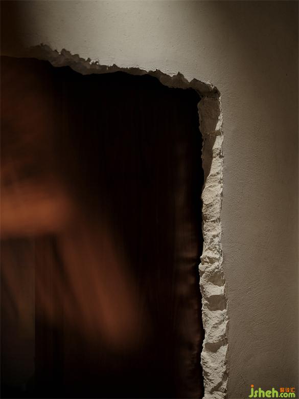 被錘子破鑿開的包間入口呈現(xiàn)出斑駁的質感,手指拂過切面可感觸其凹凸不平紋理。
