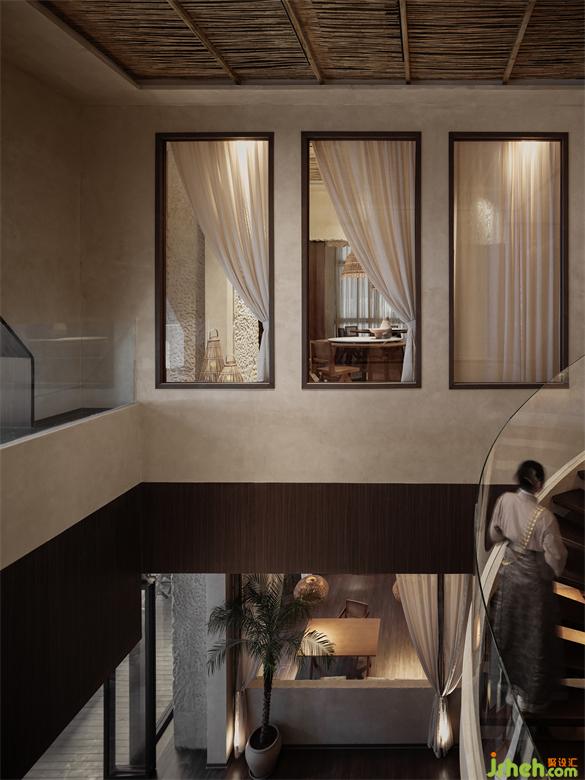 Exploring the second floor space along the stairs that grow upwards, the open dining atmosphere gradually becomes more private and quiet. The second floor space continues the natural and rustic space tone of the first floor, and has richer detail processing on top of it.