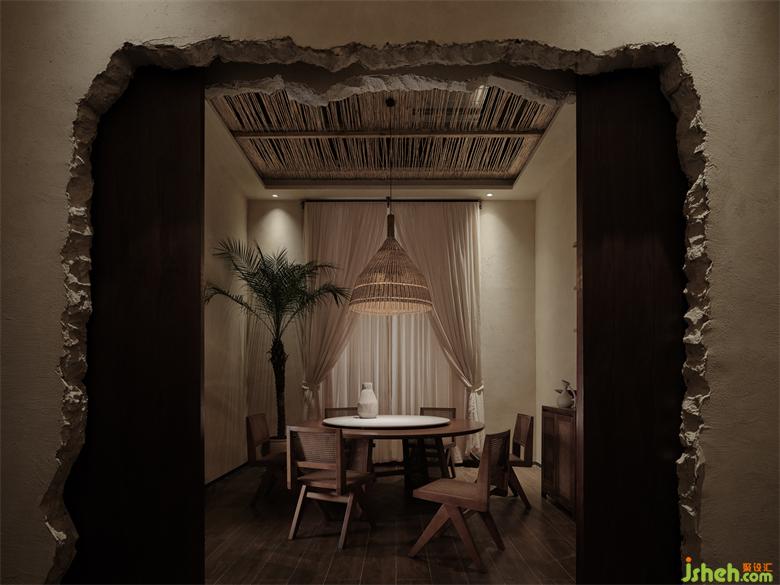 泰爽金Zapver海樂世界店,它既藏身于繁華城市之中,也藏身于大自然中。它既是飲食文化場域,也是心靈休憩之地。在這個空間之內,繁復的裝飾材料被盡可能的去除,留下的是更耐得住時光打磨的東西:茅草、原木、石塊、沙礫、藤蔓,這些源于自然的物質以另一種形式在空間內繼續(xù)生長。