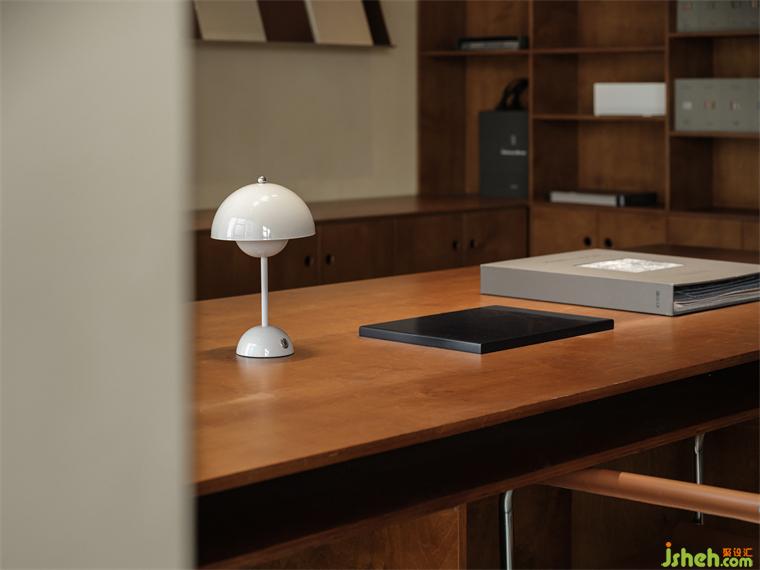 在長(zhǎng)廊的盡頭,豁然開(kāi)朗的天光讓眼前的空間展現(xiàn)無(wú)疑。木質(zhì)的溫柔交織金屬的凌厲,引導(dǎo)出開(kāi)放空間中的包容與多元,新鮮的思緒肆意飄游,或倚靠于桌角,或仰躺于天花。