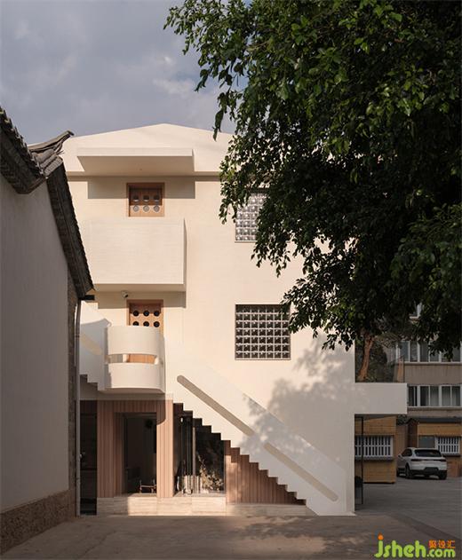 The orgin frame of this three-layer building remain unchanged to harmonize with the surroundings.