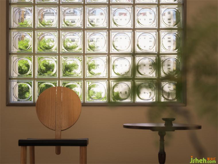 A plenty of rectangular windows was largely used in the design to introduce more natural light.The skylight on the top of the office, bright but focused light meets the demand of jewelry identification; the white and bright light in the floating window bring the landscape in; the large glass blocks on the south side make the mid-day sunlight more warm and gentle; and the side window on the west side, with its secretive and gentle light, protect the privacy of the studio in its entirety.