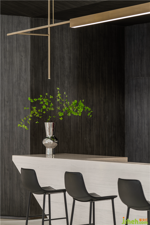 圓融與方正的融合,黑色大氣的天然木紋為背景,點綴金屬其間,層層遞進,宛如理性與情感并存發(fā)出的和聲。