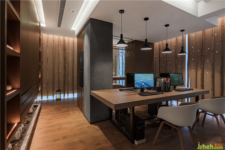 至轉(zhuǎn)彎處,潺潺流水,叮咚作響,溫暖柔和的光影附著在空間中,賦予空間極大的生命力與生動性,以禪意、自然與和諧為主題的蘊(yùn)意,秘境深邃,養(yǎng)育整個空間靈性,仿在崇山峻嶺里,竹林一隅中,一線清泉叮咚聲在林中回響。