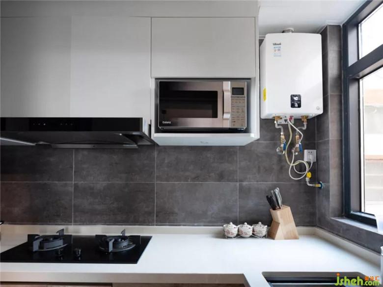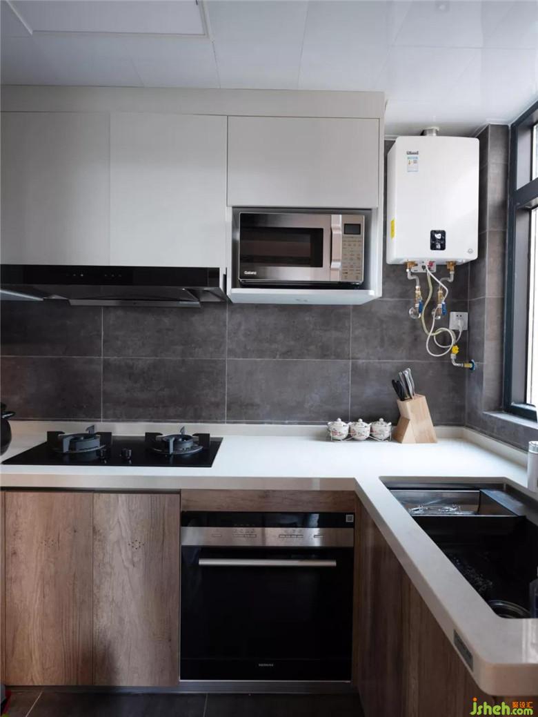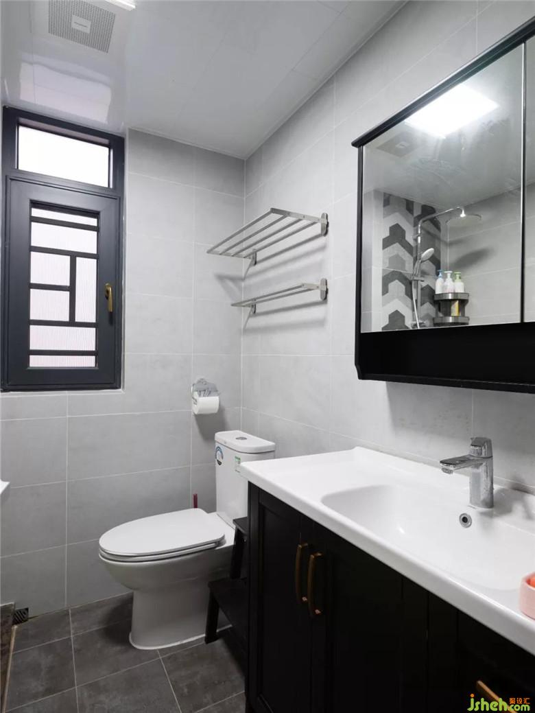 老房子改造前廚房受油煙污染嚴(yán)重,設(shè)計師在廚房的天花板改造部分,設(shè)計了條形鋁扣板天花,這種材質(zhì)輕便耐用,廣泛用于廚房和衛(wèi)生間吊頂中,既能達(dá)到很好的裝飾效果,又具備多種優(yōu)良特性。衛(wèi)生間同樣通過重新安裝上條形鋁扣板天花,改造后整體清潔干爽,地面鋪陳防水地磚,空間深灰色和淺灰色相互交織映襯,簡約清新。