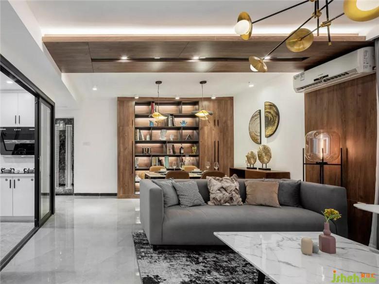 客廳改造后動線清晰,輕奢精致,設(shè)計師設(shè)計了一面落地窗,打通了和臥室的陽臺,增加客廳和臥室的光線,清爽的大理石紋理給客廳增加一縷清涼??蛷d做了半吊頂木質(zhì)的設(shè)計,這樣一來客廳與餐廳的功能區(qū)域更加清晰,復(fù)古輕奢的吊燈,金屬質(zhì)地提升了客廳的格調(diào)和氣質(zhì)。