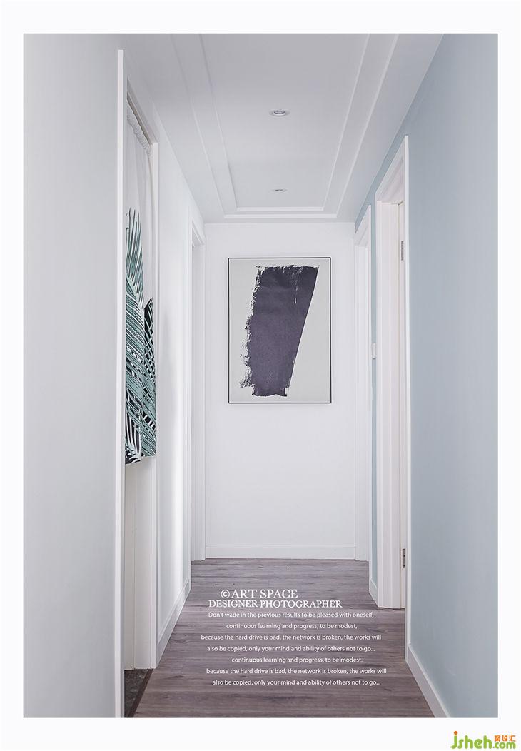 ▲中間套的硬傷就是有個(gè)長(zhǎng)長(zhǎng)的走廊,沒有做柜子啥的有點(diǎn)浪費(fèi)空間了。但是這樣真的很簡(jiǎn)約清爽。衛(wèi)生間外面裝了個(gè)門簾,點(diǎn)綴下過道的視覺。走廊盡頭的這幅畫,貌似也只有我欣賞的,老公說為啥不讓他畫一筆就好呢~