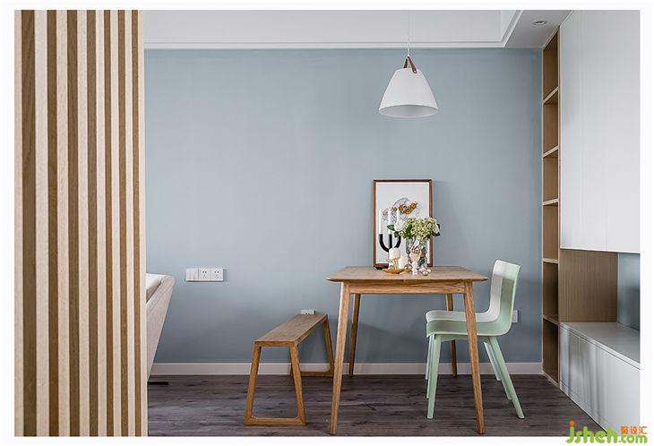 ▲餐桌區(qū)域雖然小,但是色彩的搭配上和設(shè)計師討論了很久,也看了非常多的餐桌方案。最后選擇了白橡木的餐桌和條凳,然后和燈以及整體空間色系搭配的椅子,一眼望去的東西全是淘寶買的,質(zhì)量還不錯。