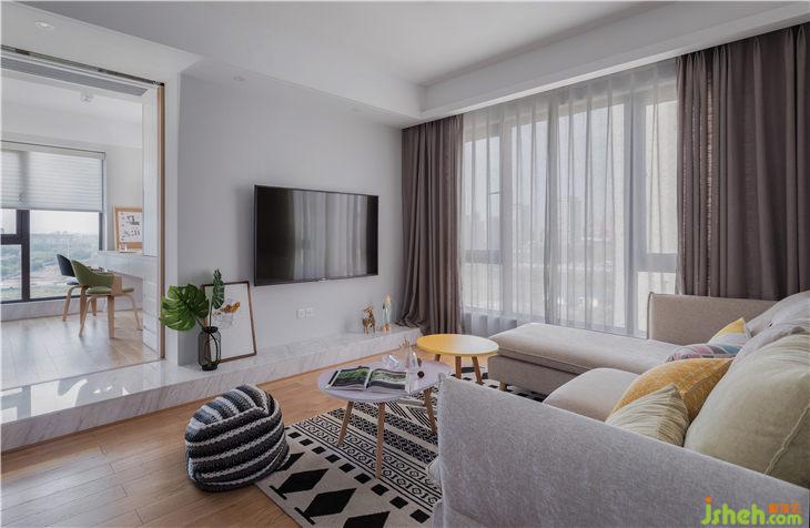 客廳用了地?zé)釋?shí)木地板,給人親切、舒適、自然的感覺,使人在整個(gè)空間里都很放松;大理石臺(tái)面把書房整體抬高與電視臺(tái)面融為一體,淺色乳膠漆把整個(gè)空間的視覺范圍擴(kuò)大了,既把空間分區(qū)化,又在視覺上融為一體。設(shè)計(jì)公司